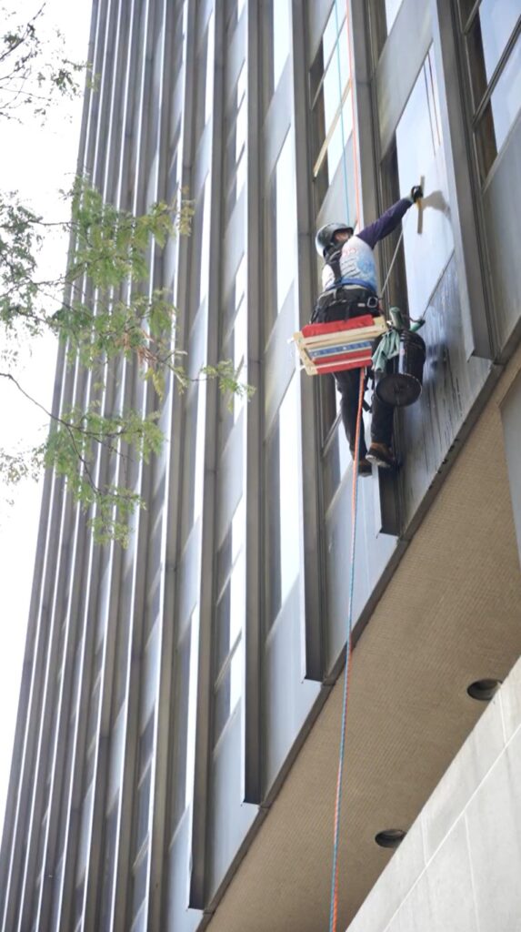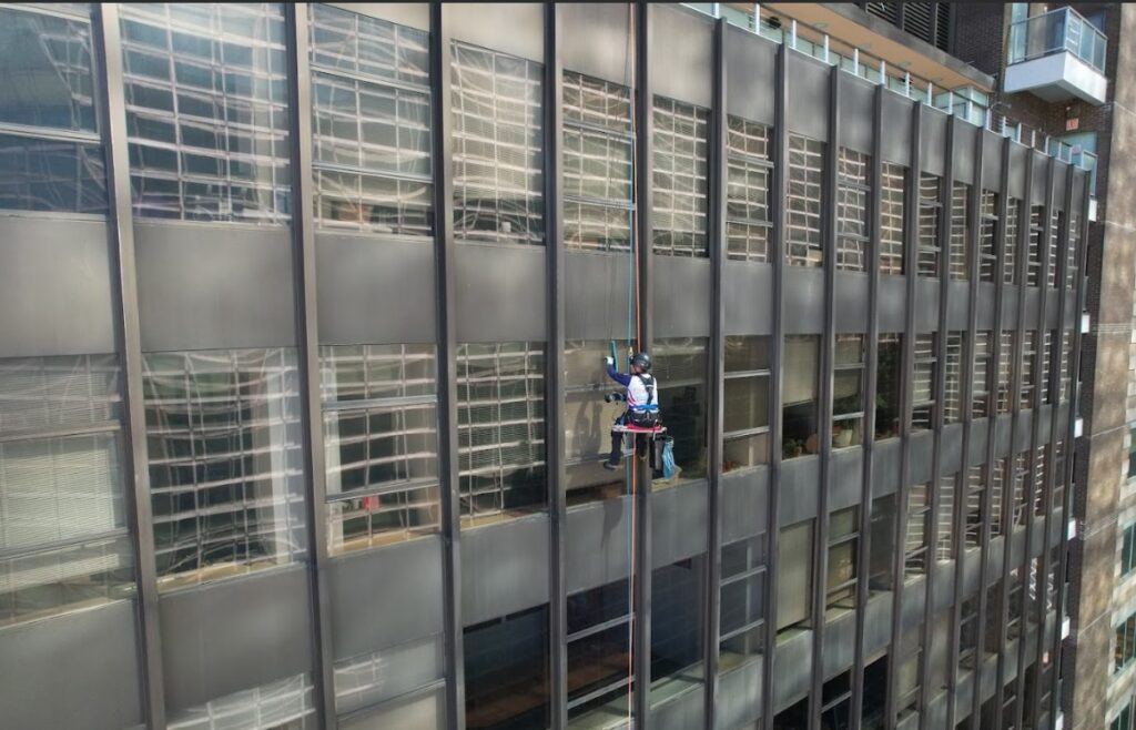When performed by trained professionals using proper equipment and safety protocols, high-rise window cleaning is very safe. Our team follows strict OSHA guidelines and uses redundant safety systems for every job.